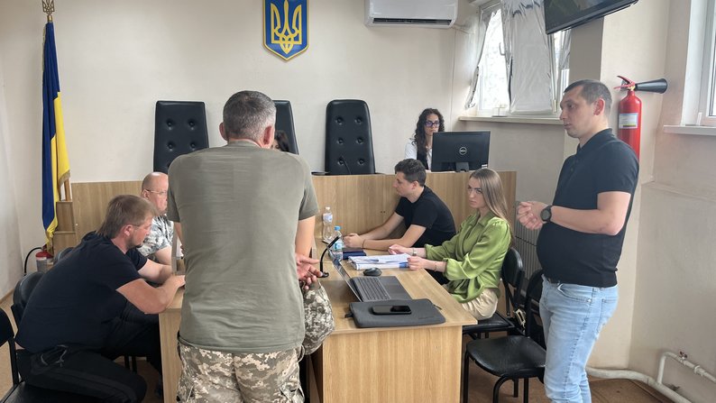 Учасники судового засідання у Салтівському суді Харкова, 1 серпня 2025 року. Суспільне Харків/Дмитро Гребінник