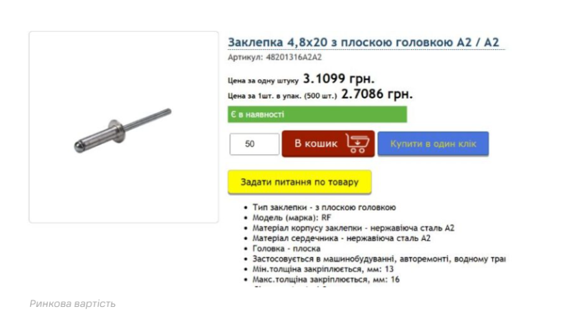 Лише на заклепках ймовірна переплата — 4,5 мільйонів гривень.