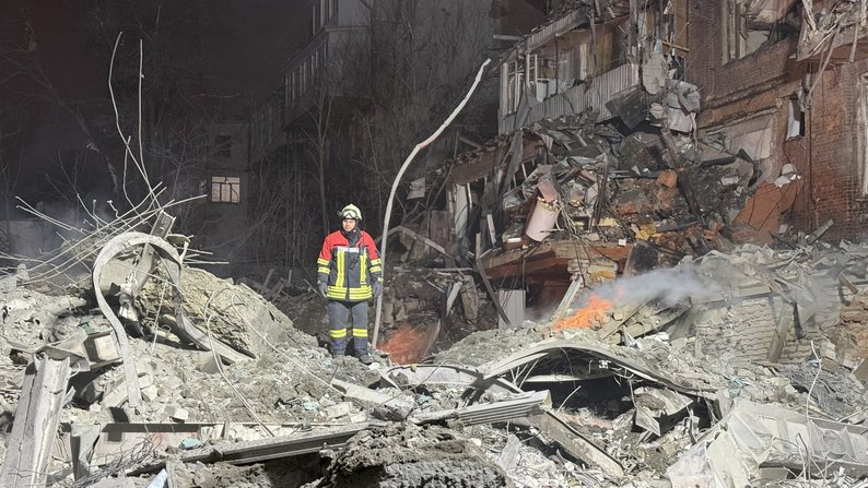 Рятувальник на місці вибуху у Харкові, 2 січня 2026 року. Суспільне Харків/Валерія Ємець