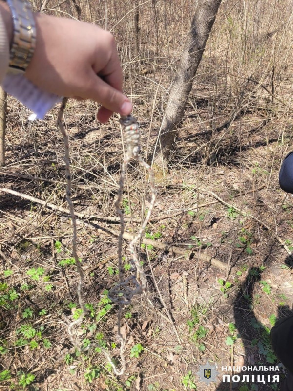 "4 квітня у лісосмузі Шевченківського району співробітники Харківського районного управління поліції № 3 проводили слідчі дії в рамках одного з відкритих кримінальних проваджень. Під час роботи поліцейські помітили чоловіка, який йшов лісопосадкою та своєю поведінкою привернув увагу правоохоронців", — сказано у повідомленні.