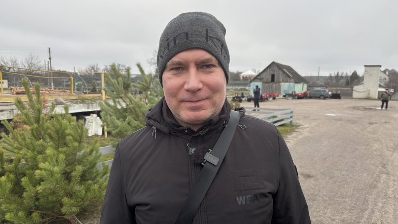Ярослав Худояр приїхав із Харкова в Мерефʼянське лісництво за ялинкою і став першим цьогорічним покупцем. Чоловік каже, щороку ставить на Новий рік живу сосну — це сімейна традиція.