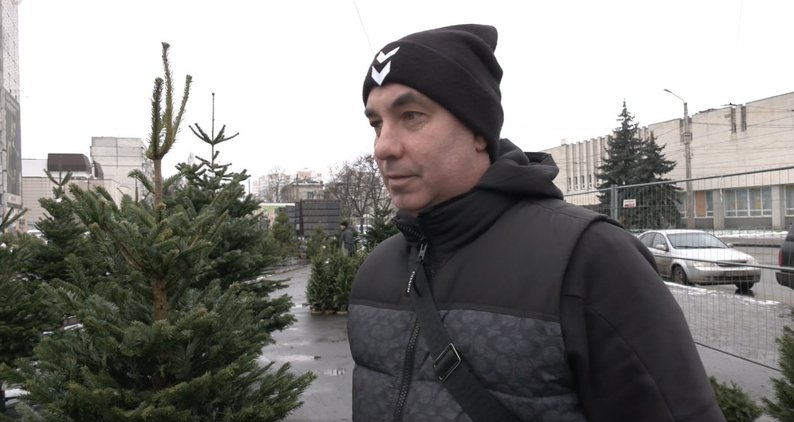 "У нас велика оселя, тому купуємо одну ялинку, дуже велику, зелену, пухнасту. А другу — для батьків. У них невелика кімната, тому ми їм обрали більш пухнасту та зелену", — розповідає покупець.