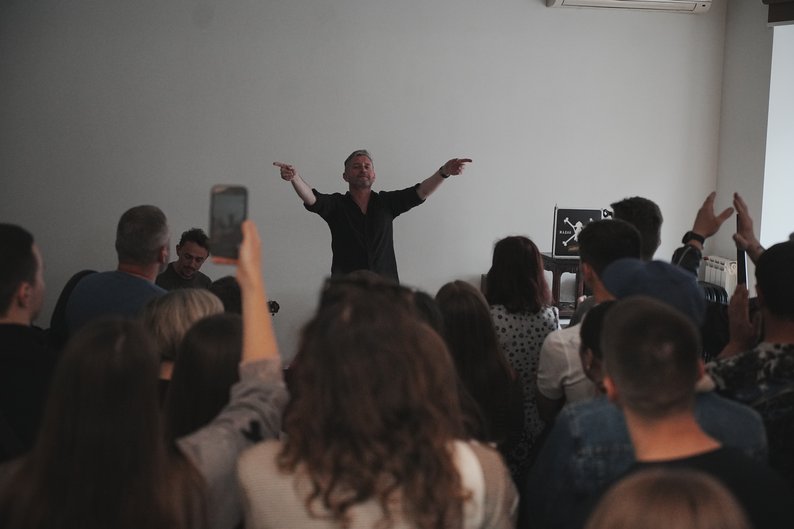 Сергій Жадан на презентації першого вінілу гурту “Жадан і собаки” під назвою “Найкращі”, 29 квітня 2025 року. Суспільне Харків/Вікторія Якименко