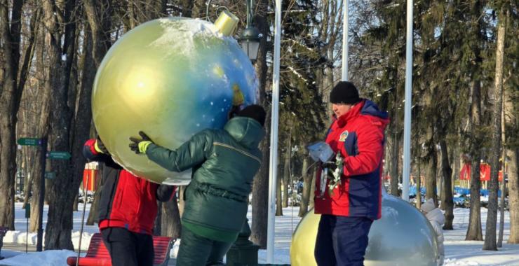 Комунальники почали із Центрального парку — 20 січня на центральній клумбі біля входу розібрали інсталяцію із ялинкових куль. Сьогодні знімають прикраси, встановлені навколо озера та біля головного входу.