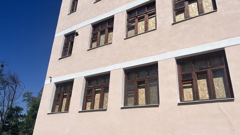 За її словами, 168 вікон у багатоповерхівці були вибиті ввечері 2 травня через влучання російського дрона за 3 метри від будинку, у гімназії поруч вилетіли 70 вікон.