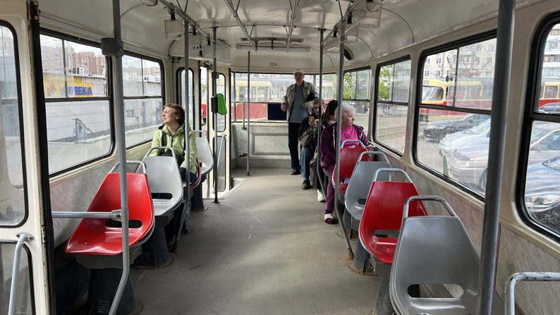 Трамвай на розворотному колі “Одеська” у Харкові, травень 2025 року. Суспільне Харків/Єлизавета Пшенична