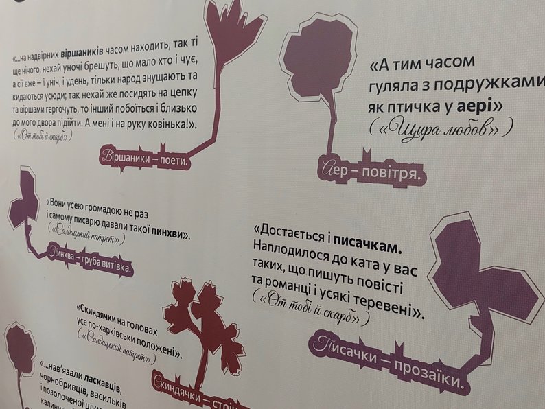 Експонат виставки “Квітка. Цвіт міста”, присвяченої Григорію Квітці-Основ’яненку, Харків, станція метро “Історичний музей”, 25 листопада 2025 року. Суспільне Харків/Ганна ЦьомикВін дуже хотів, щоб ми всі були щасливими. І тому дівчатам, хлопцям він давав якесь таке напучування у творах. Але з часом, на схилі життя розумієш, наскільки він був все-таки правий.