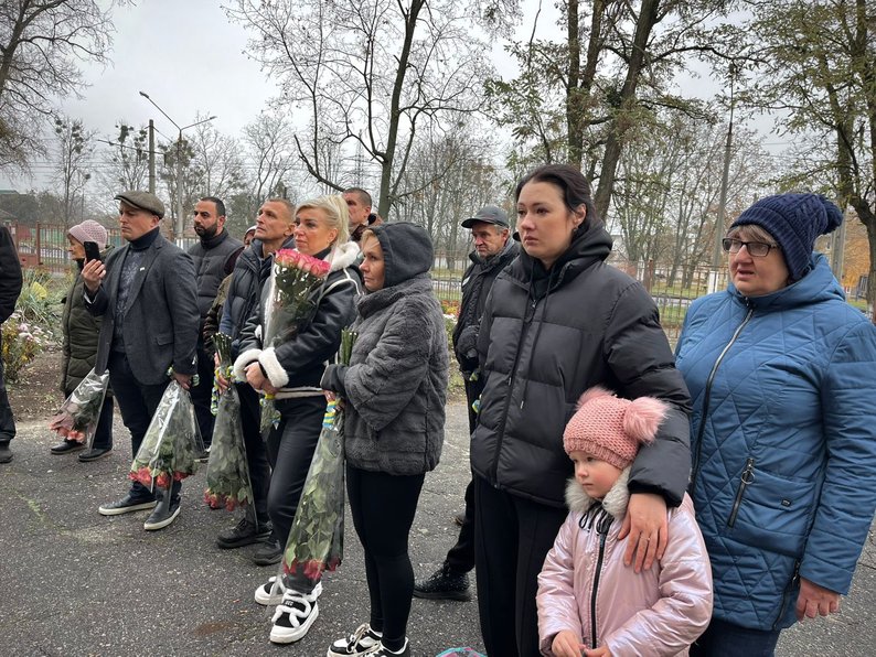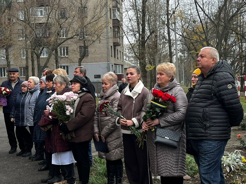 Церемонія відкриття меморіальних дощок на честь випускників Харківського ліцею № 8 Євгена Андрусовича та Ярослава Ланцова, 10 листопада 2025 року . Адміністрація Салтівського району Харківської міської ради