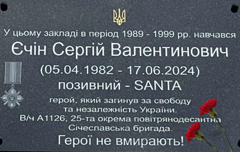 Сергій Єчін на позивний "SANTA" служив у 25-й окремій повітрянодесантній бригаді на посаді оператора БпЛА. Він загинув 17 червня 2024 року в районі Карлівки Донецької області від удару російського безпілотника та був посмертно нагороджений орденом "За мужність" III ступеня, йдеться у повідомленні.
