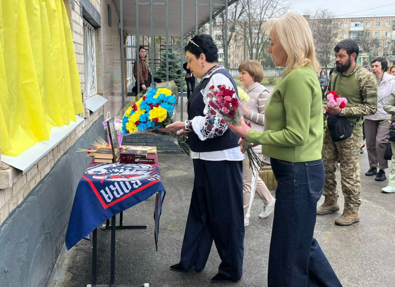 3 квітня на фасаді Харківської гімназії №77 у Слобідському районі відкрили меморіальну дошку загиблому військовому Сергію Єчіну.