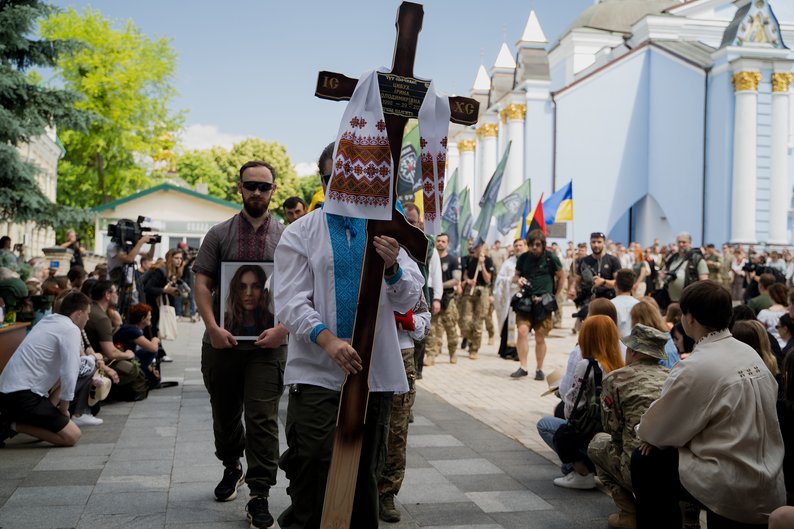 Прощання з учасницею добровольчого медичного батальйону “Госпітальєри” Іриною Цибух у Михайлівському Золотоверхому соборі, Київ, 2 червня 2024 р. Суспільне Новини/Тетяна Джафарова