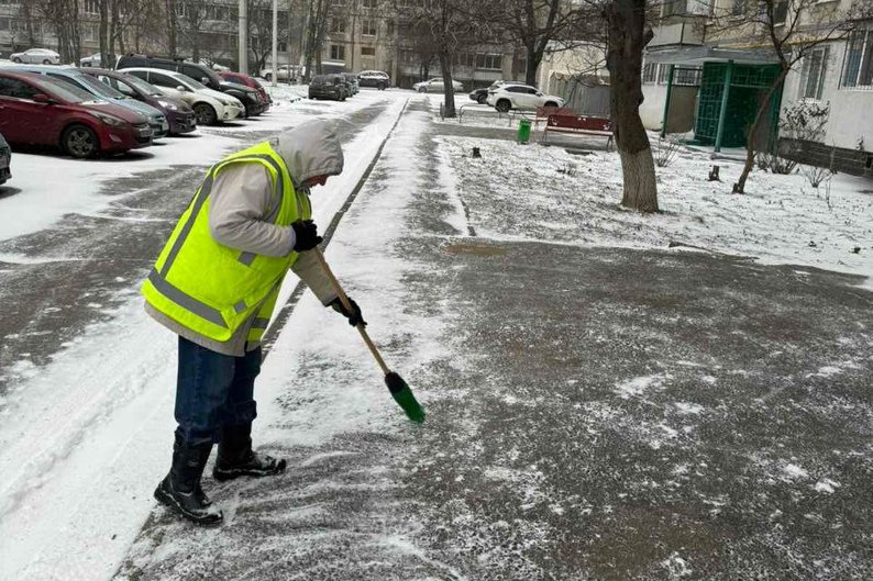 "Бригади прибирають сніг з основних магістралей, внутрішньоквартальних проїздів, парків, скверів і прибудинкових територій", — повідомили у пресслужбі міськради.