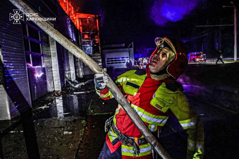 “На місце виклику негайно вирушили 9 оперативних пожежно-рятувальних підрозділів ДСНС. По прибуттю встановлено, що горить другий поверх двоповерхової будівлі, є загроза вантажним автомобілям. Завдяки оперативним діям вогнеборців було врятовано 4 вантажівки”, — повідомили у ГУ ДСНС Харківщини.