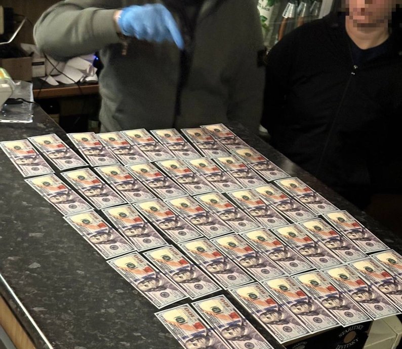 У лютому третю частину коштів "клієнт" передав через ресторан на Клочківській — залишив чотири тисячі доларів в офіціантки на барі, додають в облпрокуратурі.