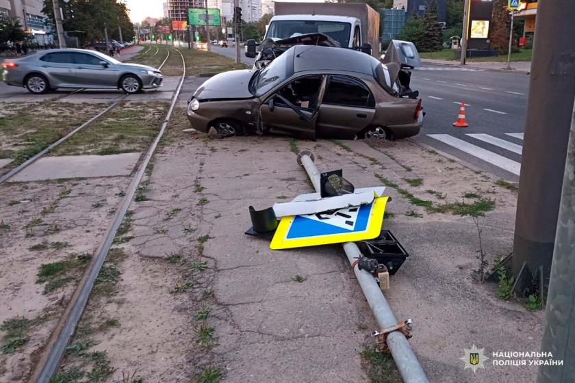 Автомобілі знесли знак пішохідного переходу та мало не вилетіли на трамвайні рейки.