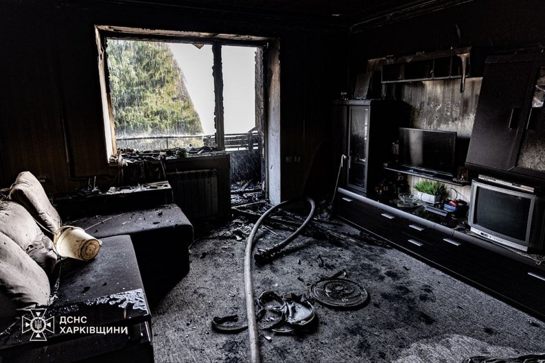 Квартира в дев’ятиповерхівці на вулиці Йогансена у Харкові, де відбулася пожежа, 10 липня 2025 року. ДСНС Харківщини