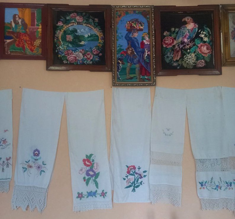 Вишиті рушники та картини в музеї в селі Коробчиному на Харківщині, серпень 2025 року. Чкаловська рада