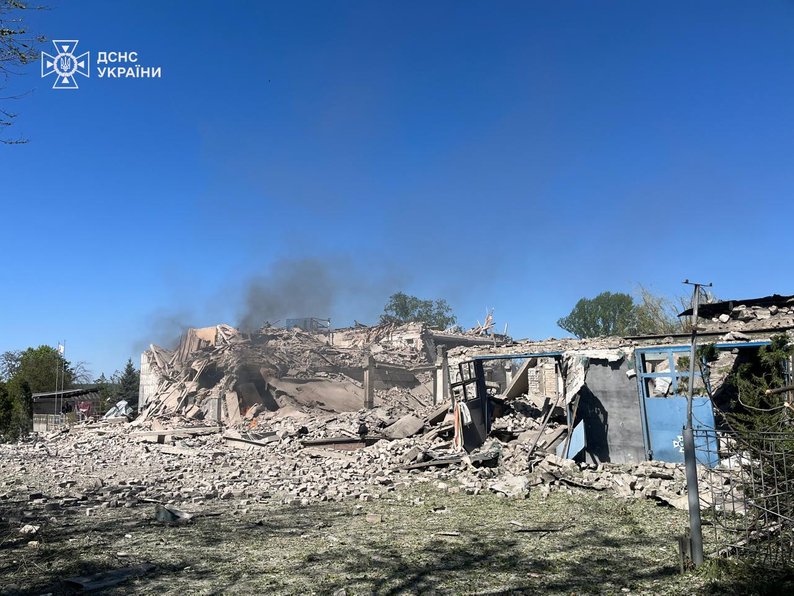 У Куп’янську Росія завдала прямого удару авіабомбою по будівлі пожежно-рятувальної частини ДСНС, 3 травня 2025 року. ДСНС Харківщини