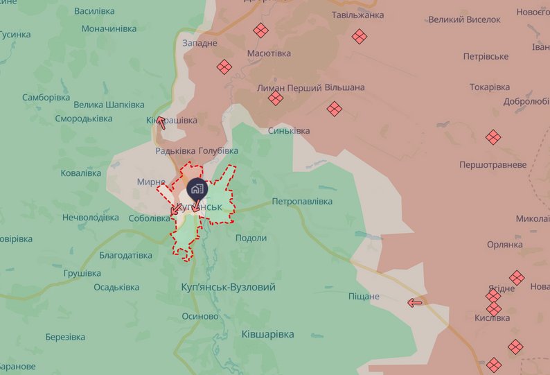 Куп’янськ на мапі Deep State за 1 грудня 2025 року. DeepStateMAP