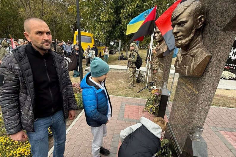 Дмитро Бухало біля пам’ятника Дмитру “Да Вінчі” Коцюбайлу. Курилівська СВА