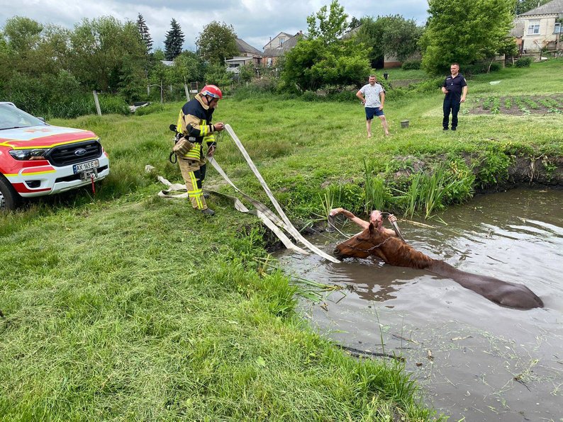 Кінь на прізвисько Турбо на Харківщині вранці 5 червня пішов пастися на галявині, впав у копанку і не зміг вибратися з неї.