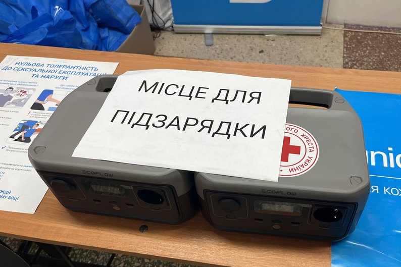 Місце для підзарядки гаджетів у транзитному пункті для евакуйованих в Лозовій Харківської області, 10 вересня 2025 року. Суспільне Харків/Дмитро Гребінник