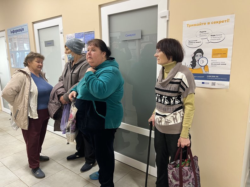 Жительки Руської Лозової сидять в черзі на прийом до лікаря-гінеколога. Суспільне Харків/Єлизавета Пшенична