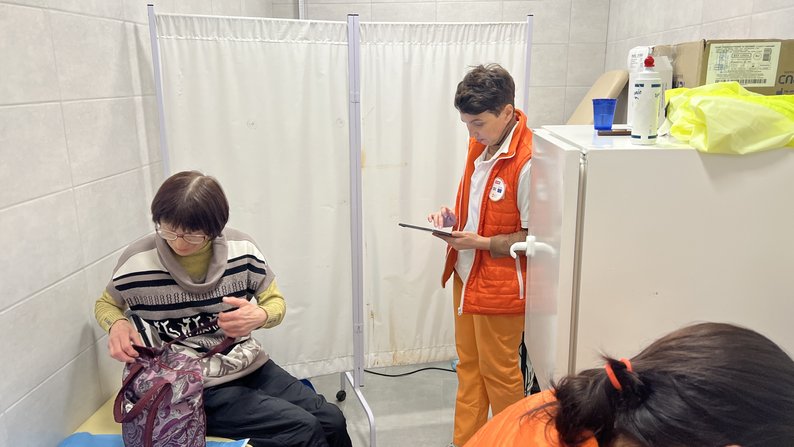 Жінки стоять в черзі на прийом до лікаря мобільної гінекологічної бригади, Руська Лозова. Суспільне Харків/Єлизавета Пшенична