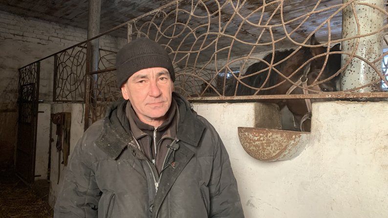 Конюх, який доглядав коней, покинутих у Старосалтівській громаді. Фото: Валерія Ємець/Суспільне Харків