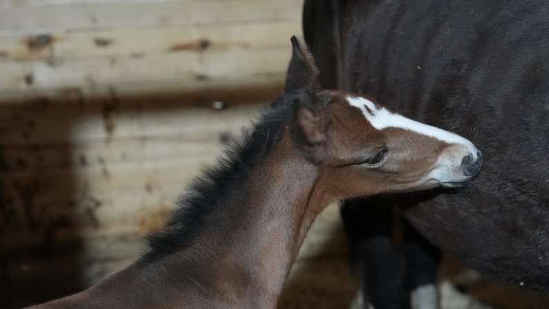 Лоша, яке народилося на конефермі біля Старого Салтова під час війни, квітень 2025 року. Суспільне Харків/Валерія Ємець