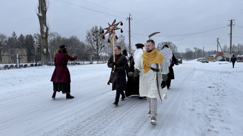 Одним із перших колядувальників зустрів житель Безруків Іван: "Згадую, як я сам малим ходив, гуляв. Так само водили й зірку, і вертеп. Дуже приємно. Я потім своїх сестер молодших теж водив".