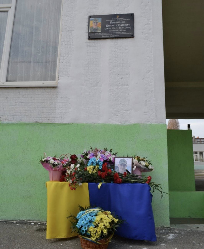 Меморіальну дошку на честь старшого солдата Дениса "Спрута" Коваленка встановили у харківському ліцеї №106. Він служив старшим стрільцем у 92-й окремій штурмовій бригаді. 23-річний Коваленко загинув поблизу Малих Проходів на Харківщині.