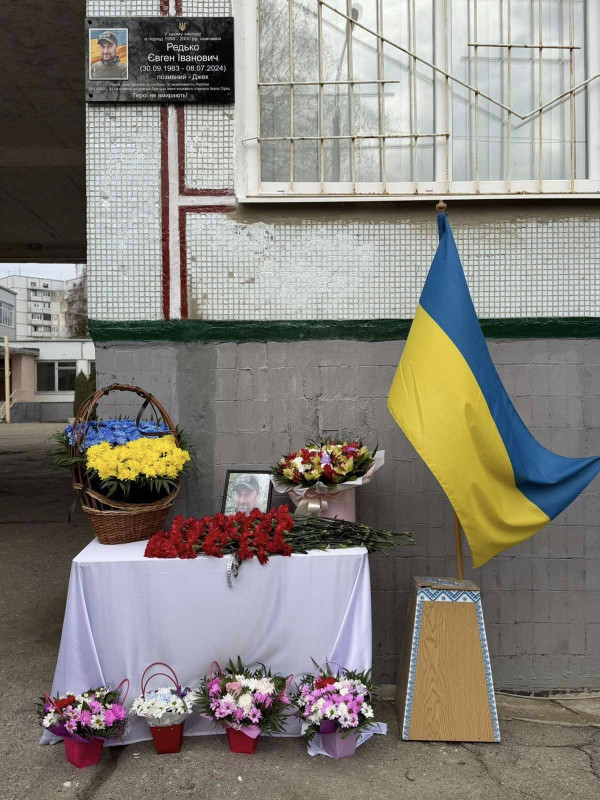 Третю дошку встановили на фасаді харківського ліцею №146 — вона увічнює пам'ять про Євгена Редька на позивний "Джек", сержанта 92-ї окремої штурмової бригади імені кошового атамана Івана Сірка. 40-річний захисник загинув біля Липців у Харківській області.