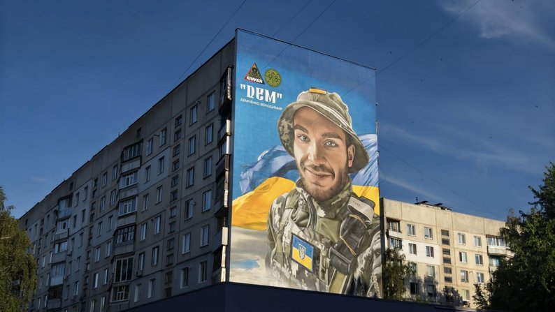 Портрет полеглого воїна Володимира Демченка на будинку в Златополі. Юлія Дейнеко