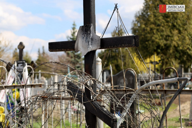 На могилі військового Максима Ткаченка у Змієві 13 квітня спалахнула пожежа — внаслідок займання згорів хрест, вінки та квіти. Перед цим, попередньо, поряд бачили невідому жінку, яка могла знімати з місця поховання мʼякі іграшки.