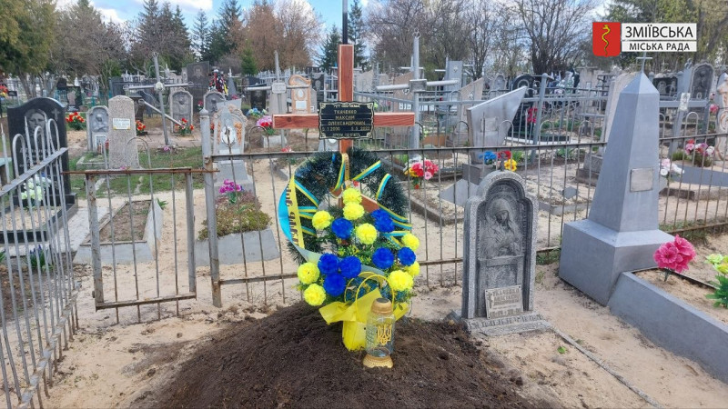Могила захисника Максима Ткаченка у Змієві, 13 квітня 2026 року. Зміївська міськрада/Facebook
