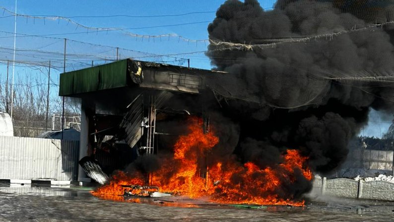 Наслідки влучання російського дрона по АЗС у Золочеві, 10 лютого 2026 року. Віктор Коваленко