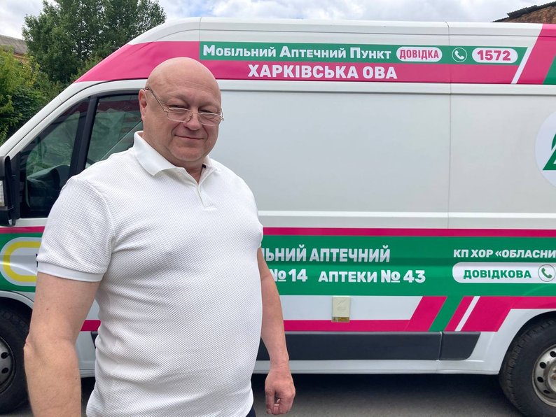 Сергій Келчевський біля мобільного аптечного пункту. Суспільне Харків/Роман Кривко