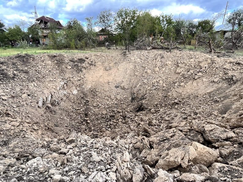 30 травня 2025 року по селу Василів Хутір під Чугуєвим вдарила російська ракета, розповів секретар Чугуївської міськради Євген Резченко. У землі залишилася вирва, яка має вісім метрів завглибшки та 25 метрів у діаметрі.