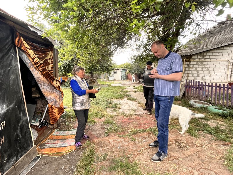 Євген Резченко очолює комісію міськради, яка займається оформленням допомоги за державною програмою "єВідновлення". У Василівому Хуторі він приймає заявки у людей, які не можуть подати їх самостійно.