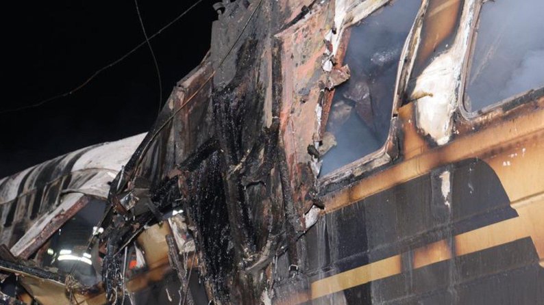 Обгорілий вагон поїзда, по якому завдали влучань росіяни, Харківська область, 27 січня 2026 року. Прокуратура України