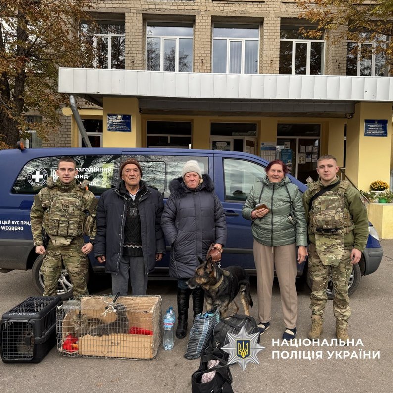 Поліцейські спецпідрозділу “Білий Янгол” разом із волонтерами евакуювали з Куп’янська подружжя та їхніх улюбленців. Поліція Харківщини