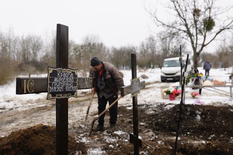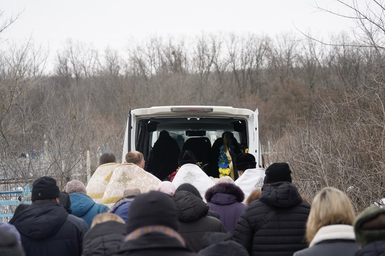 Прощання з Григорієм Шикулою та його трьома дітьми, Сковородинівка, Харківська область, 13 лютого 2026 року. Суспільне Харків/Олександр Манченко