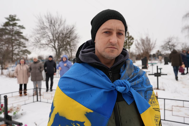 На прощання з Григорієм та його дітьми прийшов Віктор Бондаренко — товариш загиблого з Богодухова. Каже, почали спілкуватися близько року тому.