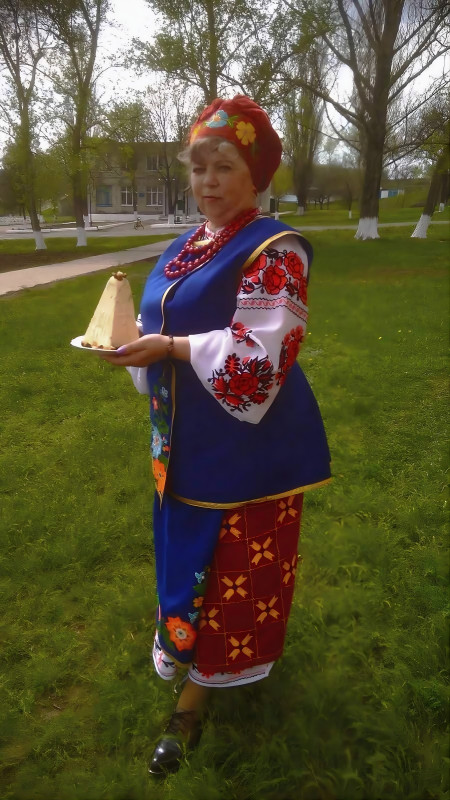 Алла Радіонова із сирною паскою. Народний колектив “Киселяночка”/Facebook