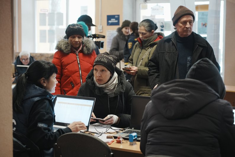 Евакуйовані жителі Харківщини в Координаційному гуманітарному центрі, Харків. Суспільне Харків/Вікторія Якименко