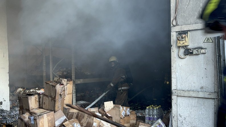 Російський БпЛА поцілив у Харкові по продуктових складах: спалахнула пожежа