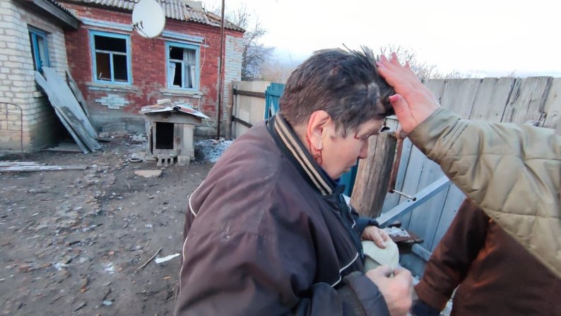 72-річна жителька Лютівки зазнала порізів та гострої реакції на стрес внаслідок авіаударів російських військ по селу ввечері 8 квітня 2025 року. Віктор Коваленко