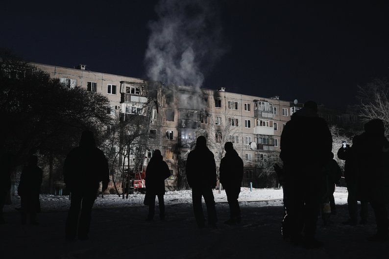 Люди біля будинку на Салтівці, куди влучив російський БпЛА, 3 лютого 2026 року. Суспільне Харків/Вікторія Якименко