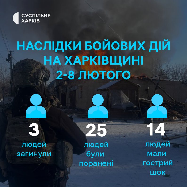 Наслідки бойових дій на Харківщині протягом 2-8 лютого 2026 року. Суспільне Харків